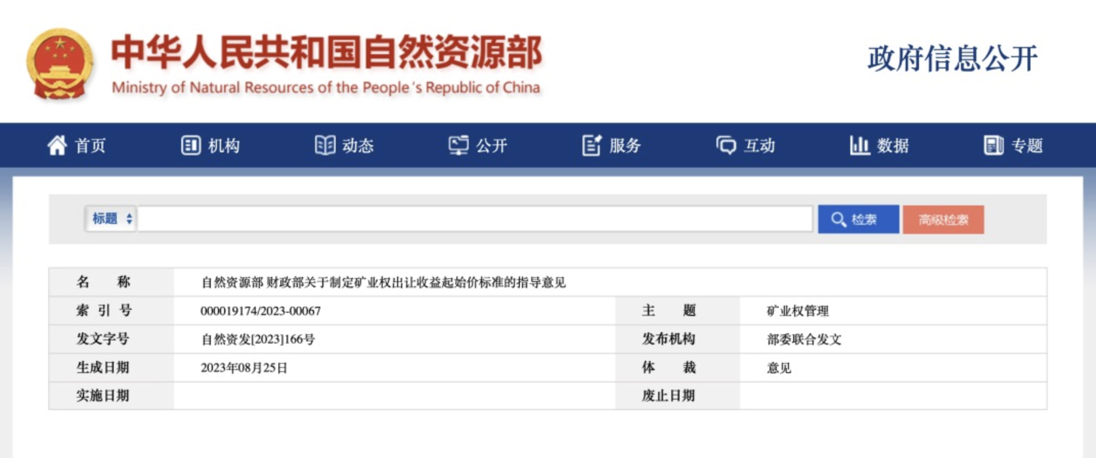 重要文件!礦業(yè)權(quán)出讓收益起始價標(biāo)準發(fā)布